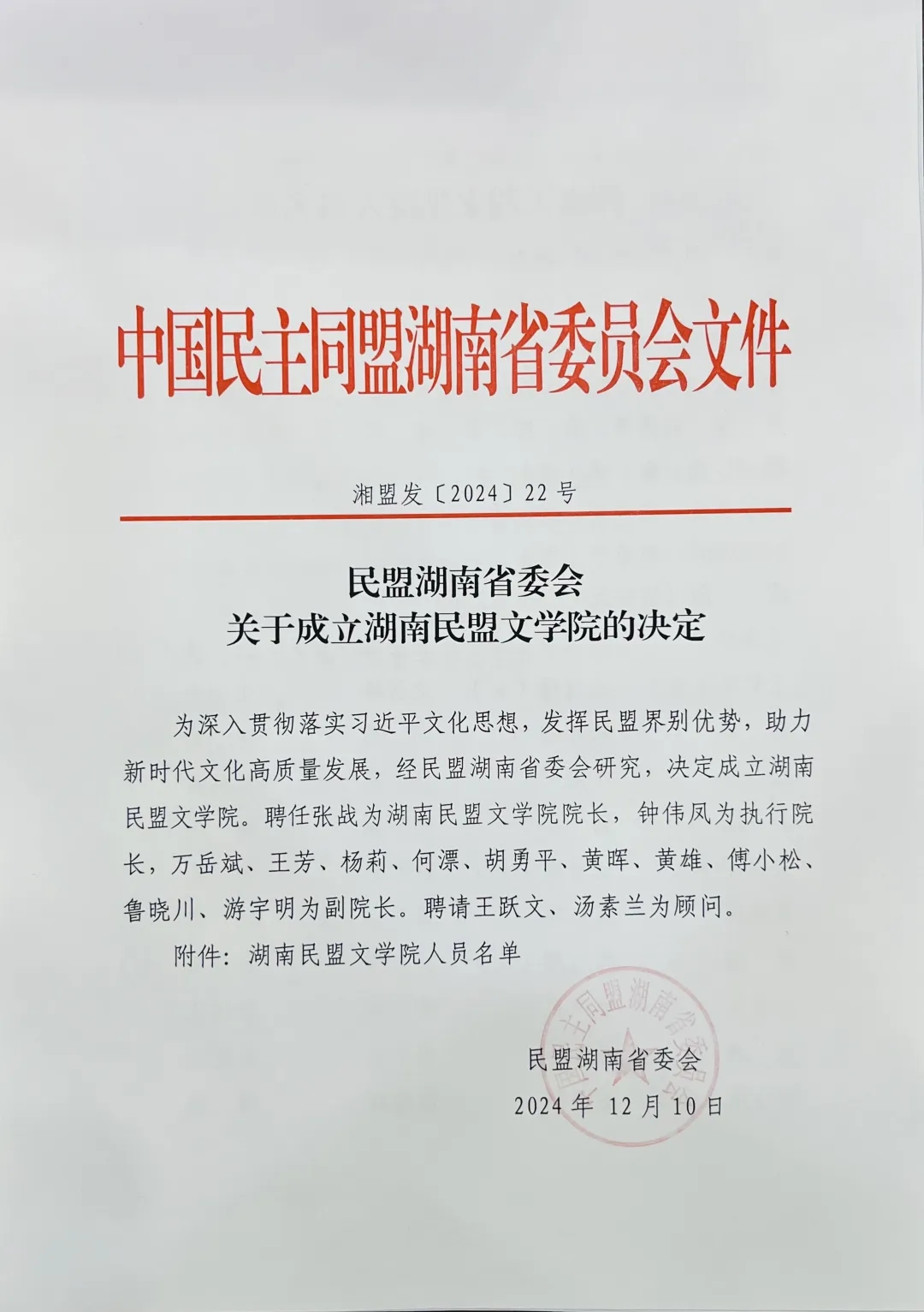 2024年12月10日,湖南民盟文学院成立大会盛大启幕,标志着湖南民盟在文化领域开启了崭新篇章,众多文化界、民盟内部人士及各界嘉宾齐聚一堂,共同见证这一历史性时刻。