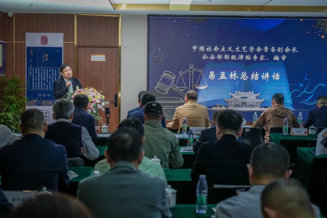 中国社会主义文艺学会常务副会长易孟林在总结讲话中指出,法治文化创新必须与中国式现代化同频共振。他回顾了中国法治文化网从纸质媒体到网络平台的发展历程,强调法治文艺要服务于中国式现代化建设的典型人物与事件,并高度评价瀛启法律服务部的成立是法治文化创新实践的重要体现。