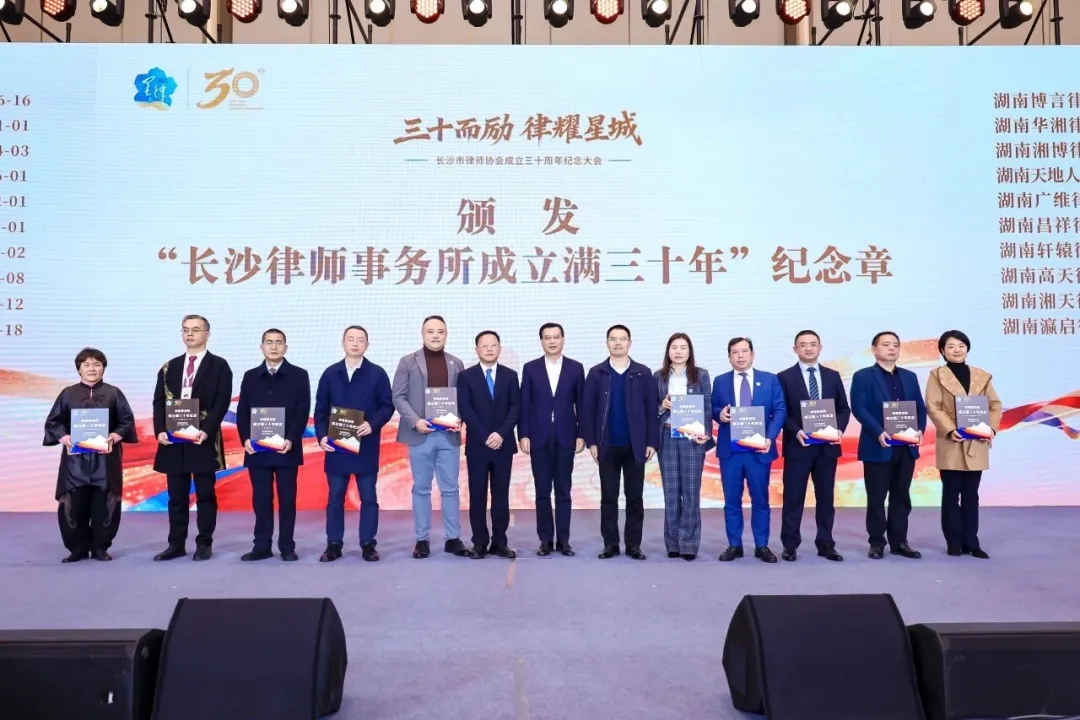 时光荏苒,初心如磐。2025 年12 月12 日,长沙市律师协会成立三十周年纪念活动在北辰国际会议中心隆重启幕。这场汇聚全市法律同仁的行业盛会,以 “三十而励,律耀星城” 为核心主题,通过成果展示、领导致辞、纪念章颁发、行业代表分享等多元环节,全方位回溯长沙律师行业三十载栉风沐雨的发展历程,共同绘就新时代法治建设的宏伟蓝图。