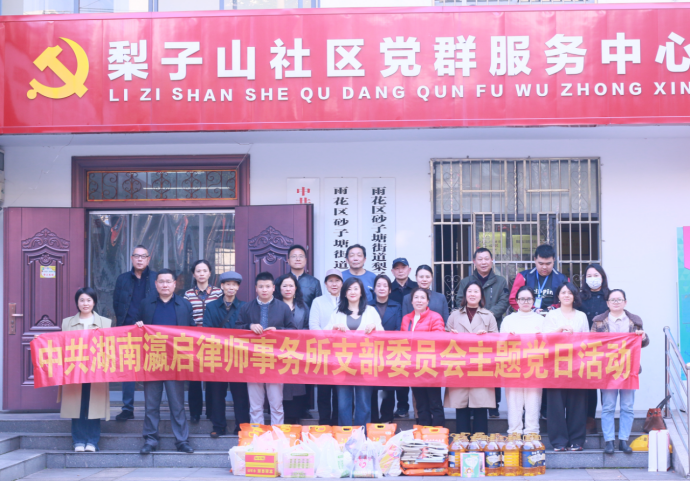 2025年12月19日,一场主题为“法润夕阳护成长 温情慰问暖人心”的法治宣传暨关爱公益活动在雨花区砂子塘梨子山社区圆满举办、温情落幕。活动由湖南瀛启律师事务所党支部牵头,联合瀛启启邦显辉(长沙)联营律师事务所党支部、瀛启启邦显辉(岳阳)联营律师事务所、湖南人和(岳阳)律师事务所党支部,携手雨花区砂子塘梨子山社区党支部共同开展。瀛启所党支部副书记曹天舒、组织委员朱玉香,王晓、龙意、李纬夫律师,长沙联营所党支部漆查帮,岳阳联营所党支部周雨濛,岳阳人和所范亚南、陈勇等党员代表携手雨花区砂子塘梨子山社区党委书记张亮亮、副书记谢洪英、罗仄平,以及社区8名孤寡老人代表、12名留守儿童及监护人代表,齐聚一堂,为特殊群体传递关怀与温暖。