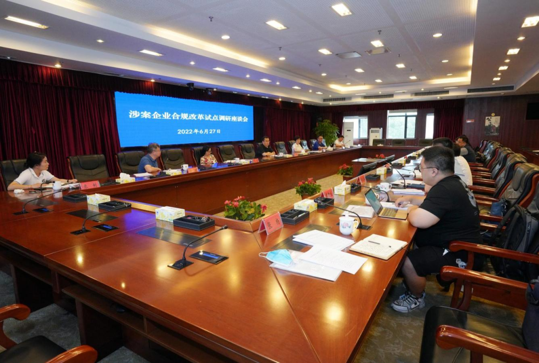 省检察院法律政策研究室主任王国忠,第四监察部主任陈代明分别为课题组介绍了我省涉案企业合规改革试点工作的整体情况及案件的办理情况。