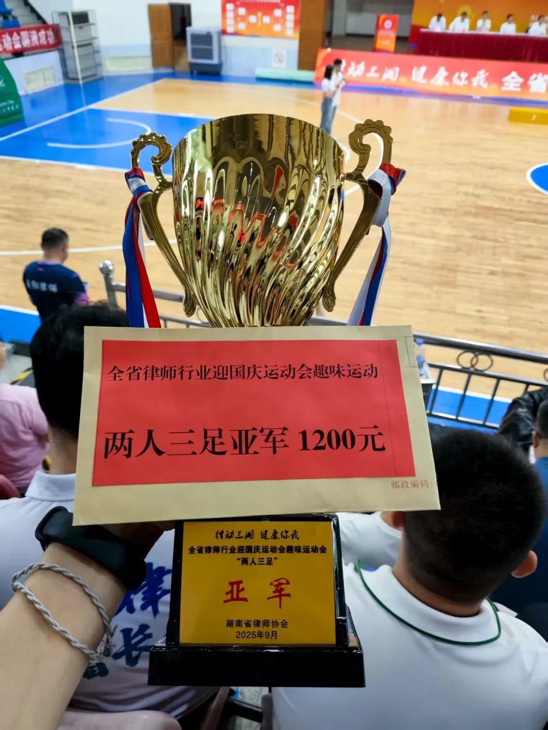 近日,湖南省律师行业迎国庆运动会顺利举办,我所积极响应湖南省律师协会号召,以实际行动支持行业文化建设与文体活动开展,我所李纬夫律师、莫琼律师、吴宛奇律师加入长沙市律师协会代表队,共同征战运动会项目—— 两人三足团体比赛。最终,三位律师凭借出色的协作能力与顽强的竞技精神,助力长沙市律协代表队夺得该项目亚军,为长沙律师行业与瀛启所赢得荣誉。