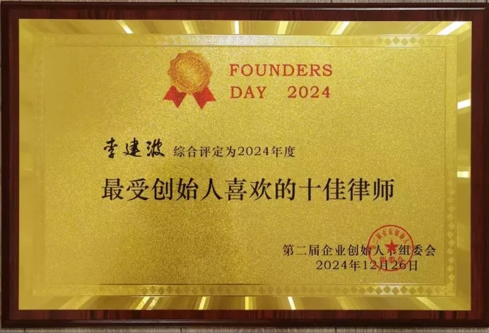 12月26日,第二届企业创始人节在长沙芙蓉华天大酒店隆重举行。此次活动以“创无限,始向前”为主题,旨在弘扬企业家精神,关注创始人成长,通过分享经验与创新思维,激发更多创业激情与灵感。来自各地企业家代表130余人参加,我所高级合伙人、监事长李建波参加本届企业创始人节大会,并被综合评定为“最受创始人喜欢的十佳律师”。