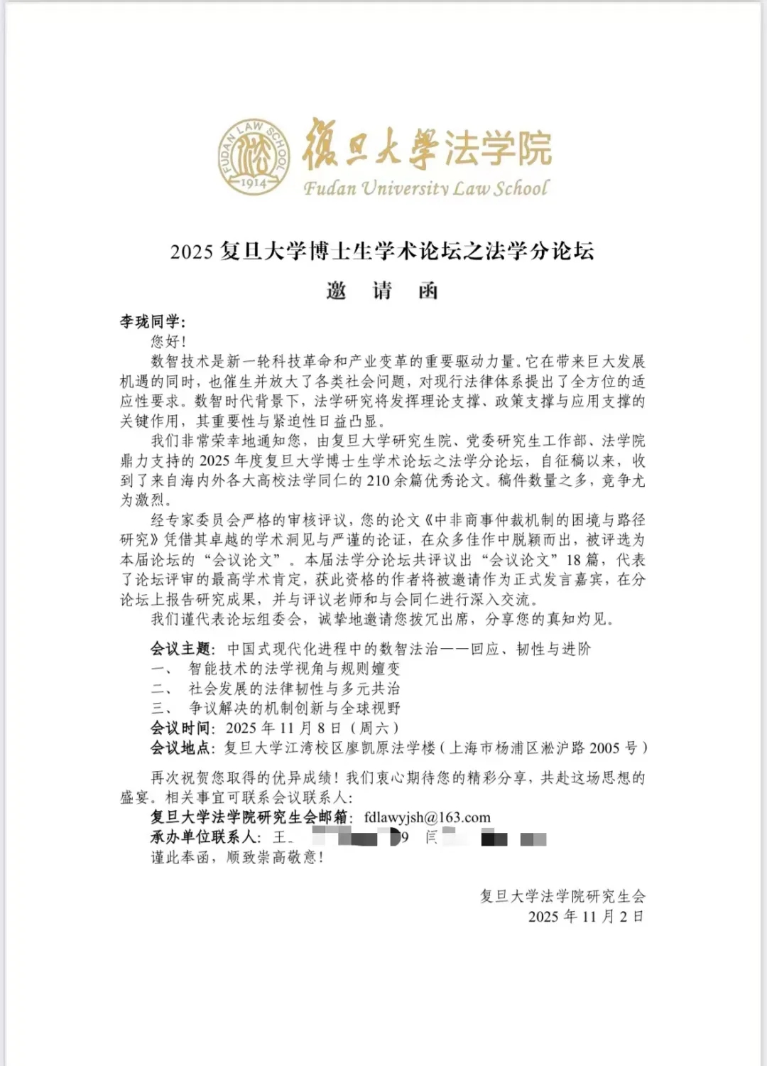 据了解,本次复旦大学博士生学术论坛聚焦数智时代法治建设的创新发展,法学分坛汇聚了国内外知名法学专家、高校学者及实务界精英,围绕涉外法治、争议解决等前沿议题展开深度研讨。李珑的获奖论文立足中非经贸合作高质量发展需求,聚焦中非商事仲裁机制的现实困境,基于在非实地调研系统剖析了仲裁协议效力认定、程序规则对接与裁决跨境执行三大核心难题,并为构建兼具本土适应性与国际公信力的中非特色争端解决机制提供了实践路径。